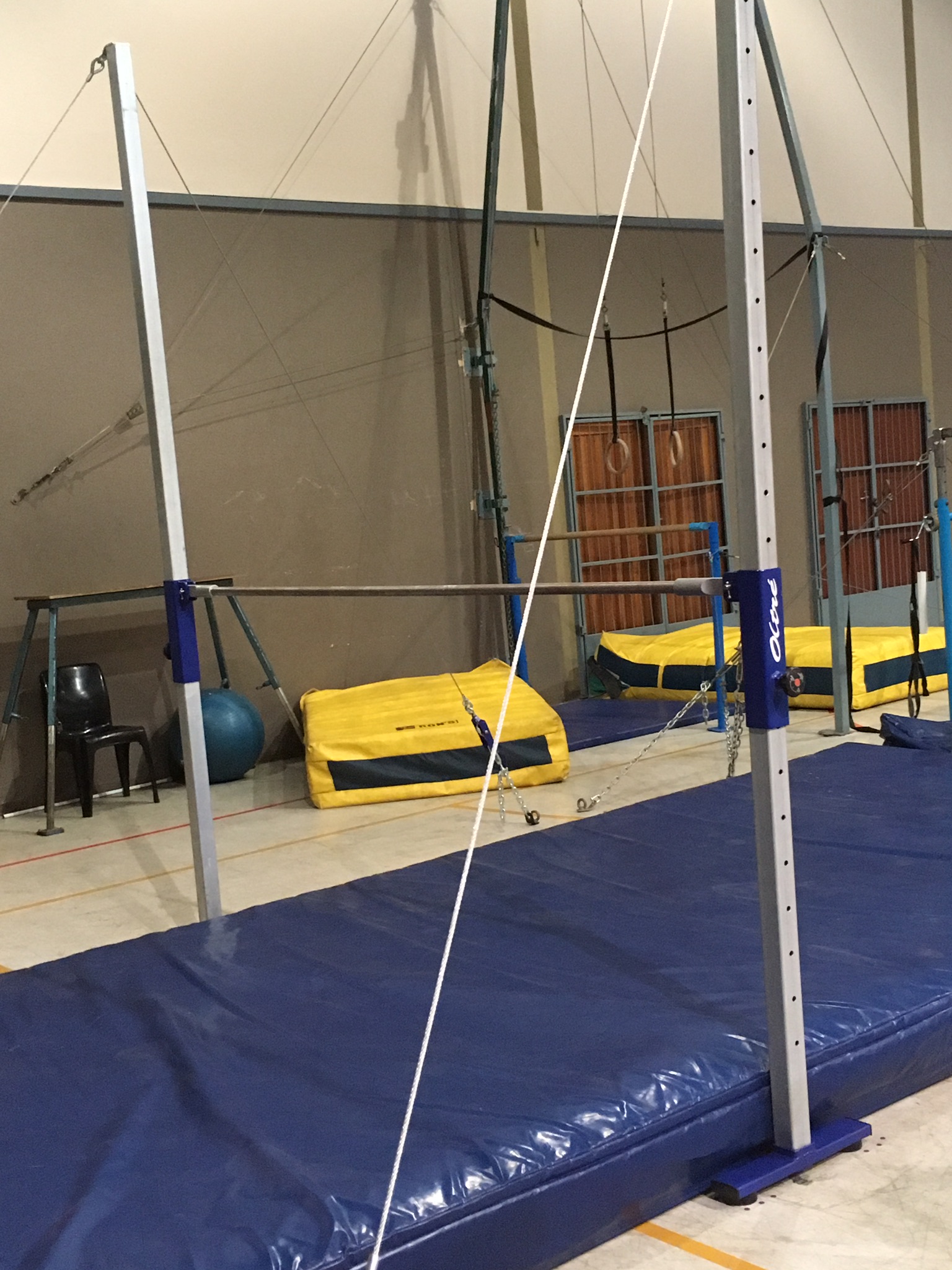Locally manufactured horizontal bar with rail included. Horizontal bar can be replaced by a women’s asymmetric bar. Height is adjustable from 60-290cm with quick height adjustments. Tension lever and cables are included. This bar is ideal for training.